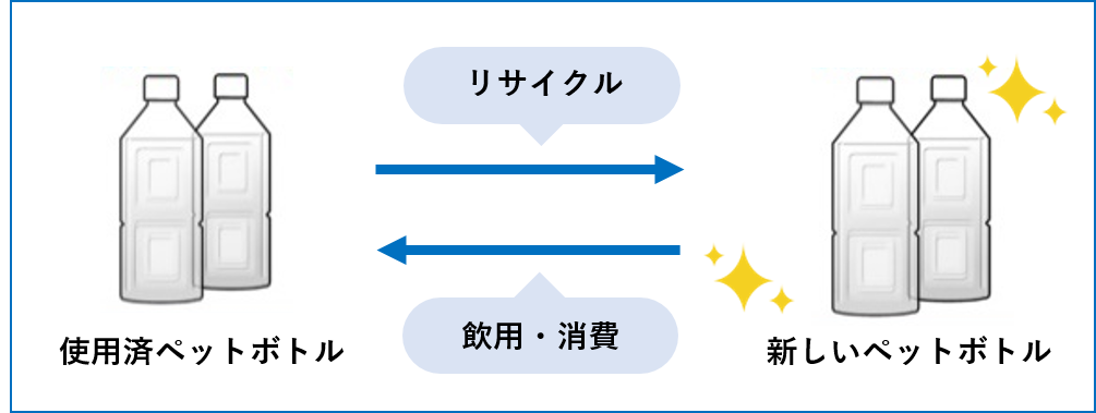 使用済みの「ペットボトル」が新しい「ペットボトル」に生まれ変わる水平リサイクルを行っています。正しく分別し、資源を有効活用します。
